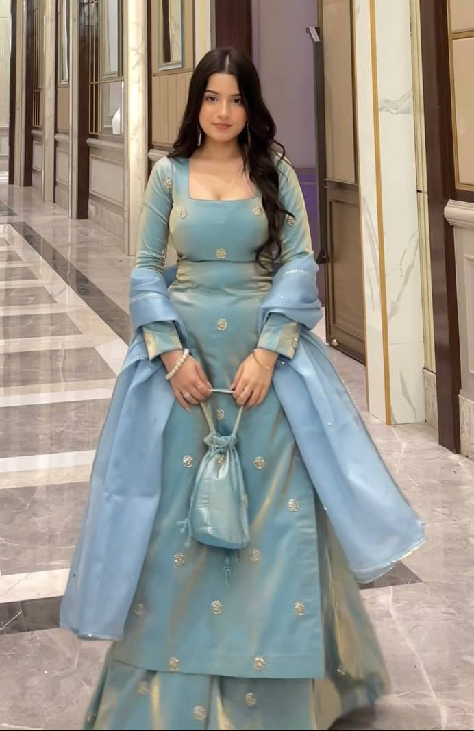 Royal Festive Look 👑 Chinon Silk Kurti Sharara With Heavy Dupatta