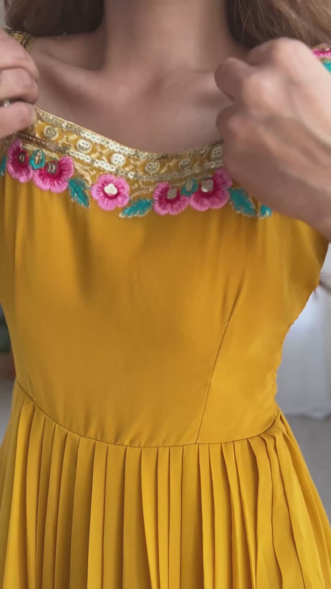 New Designer Mustard Color Premium Heavy Georgette Anarkali Gown With Bottom And Dupatta Set