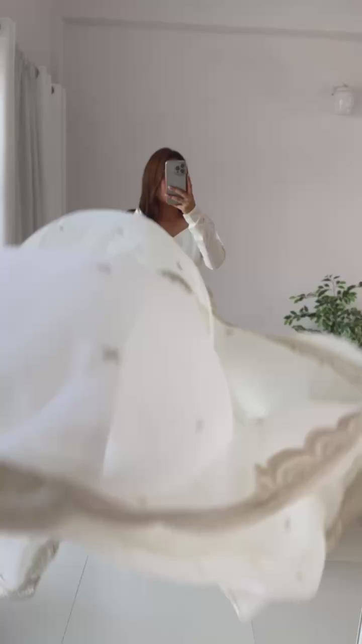 White Heavy Roman Silk Chanderi 16 Kali Anarkali Set